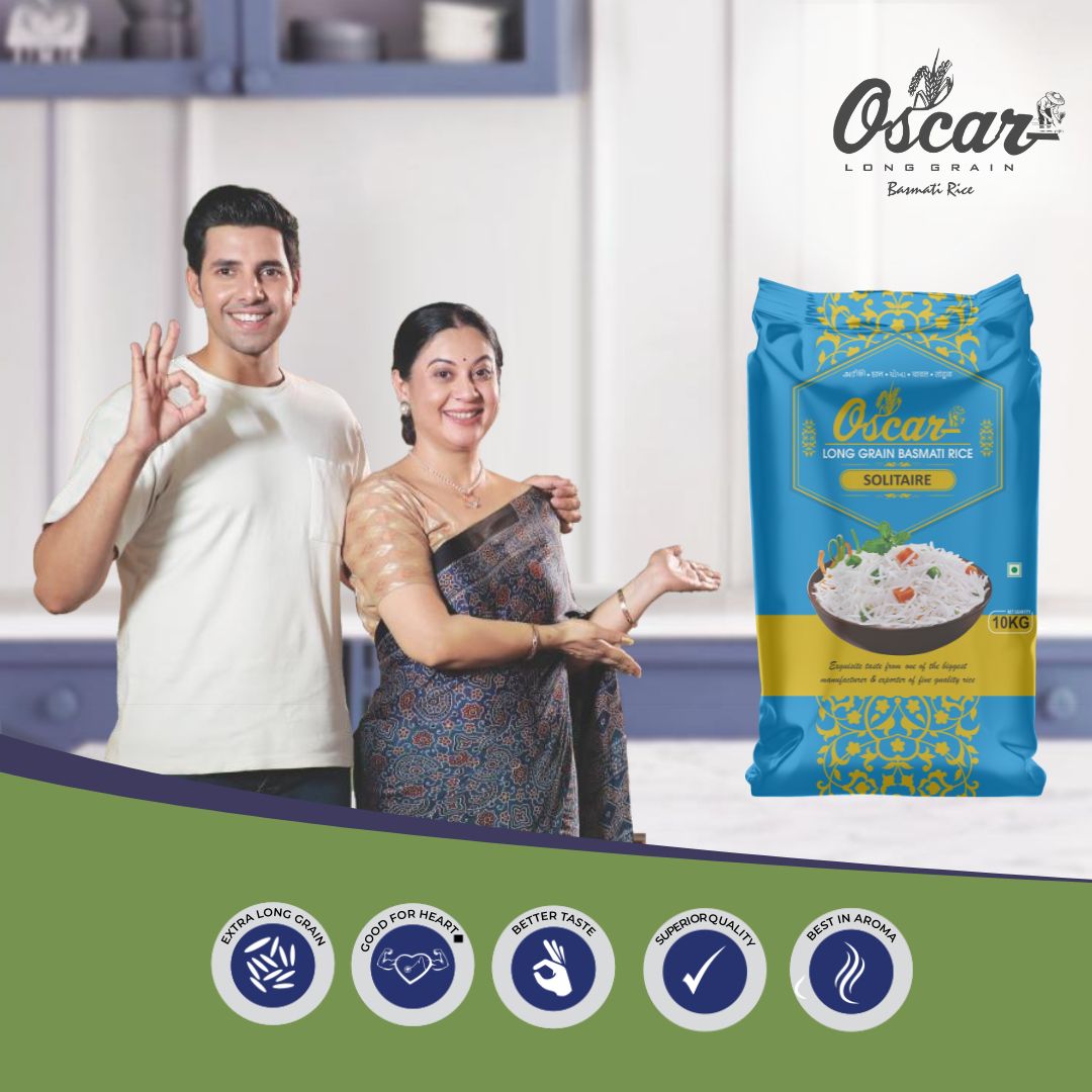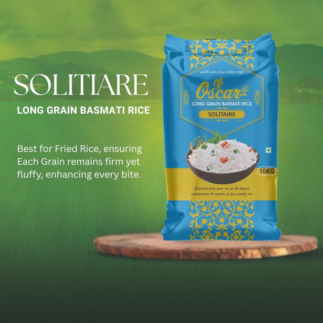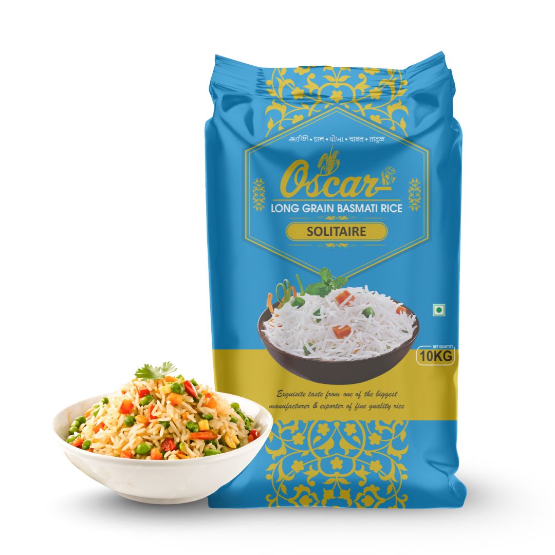Oscar Solitaire Long Grain Basmati Rice, the secret ingredient for truly spectacular meals. Sourced and exported by one of the biggest manufacturers of fine quality rice, this premium Basmati is defined by its exquisite taste and superior cooking properties.
