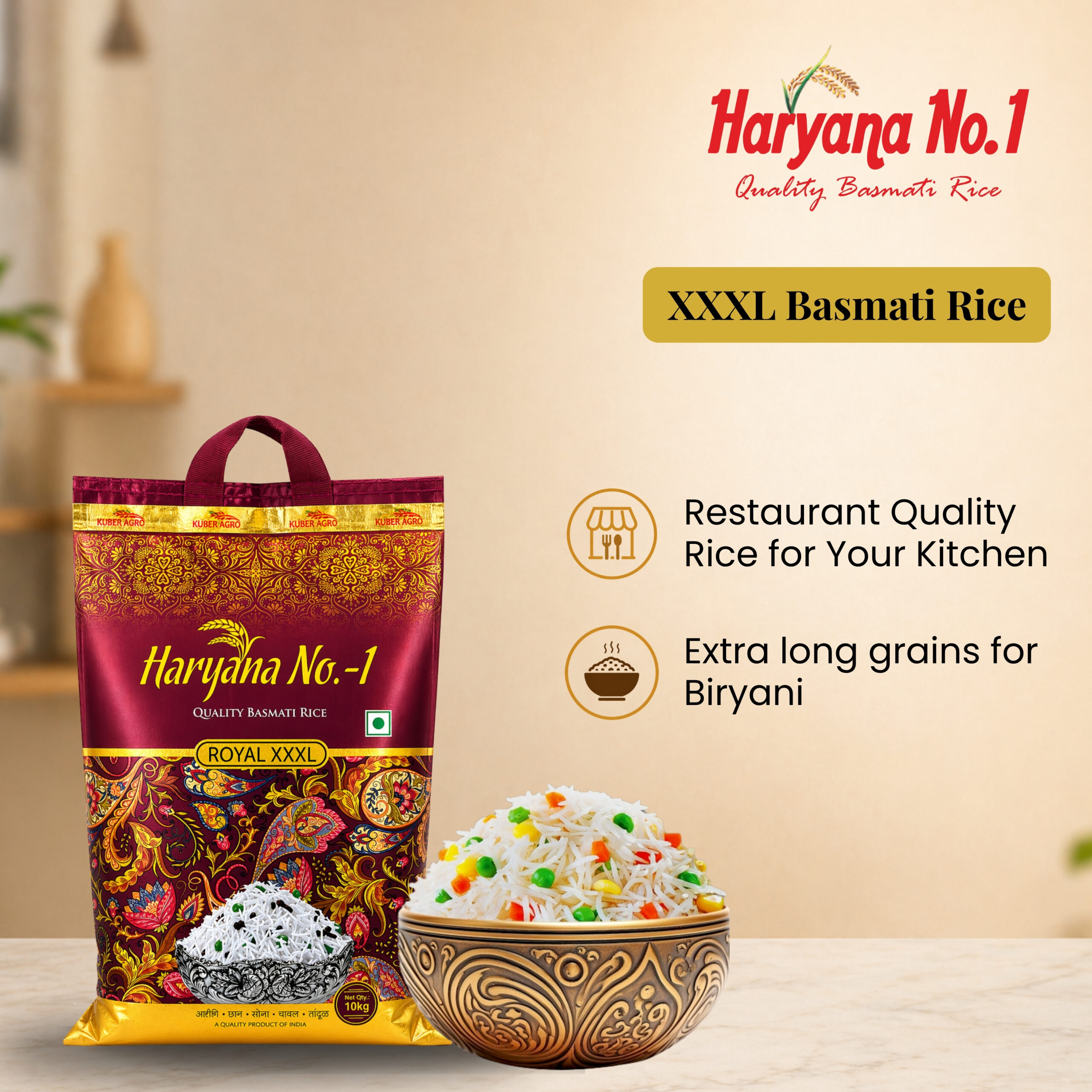 Royal XXXL Long Grain Basmati Rice brings you the perfect balance of aroma, texture, and natural sweetness. Specially crafted for everyday cooking, this rice delivers a soft, creamy texture that enhances traditional Indian desserts like Royal XXXL. Each grain cooks fluffy and separate, making it a reliable choice for daily meals and festive dishes alike.